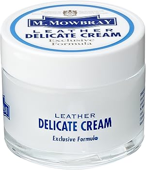 クリームならコロンブスのレザークリスタルおすすめ。水も有機溶剤もワセリンも入ってないからほとんどの革で使えて防カビ剤入り。