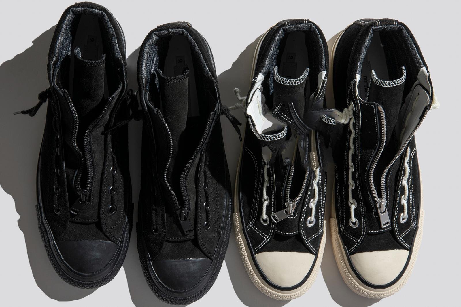 マインデニム×ノンネイティブ、小さく収納できるオールブラックダウンベスト&スエードスニーカー