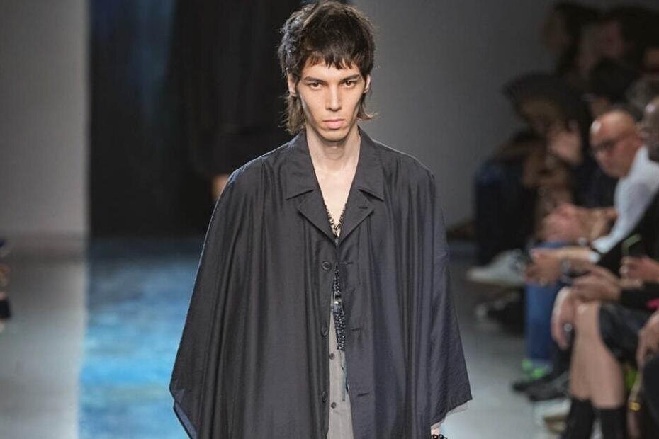 ヨウジヤマモト プールオム、軽やかなシルクのブラックスーツや万華鏡プリントのジャケット