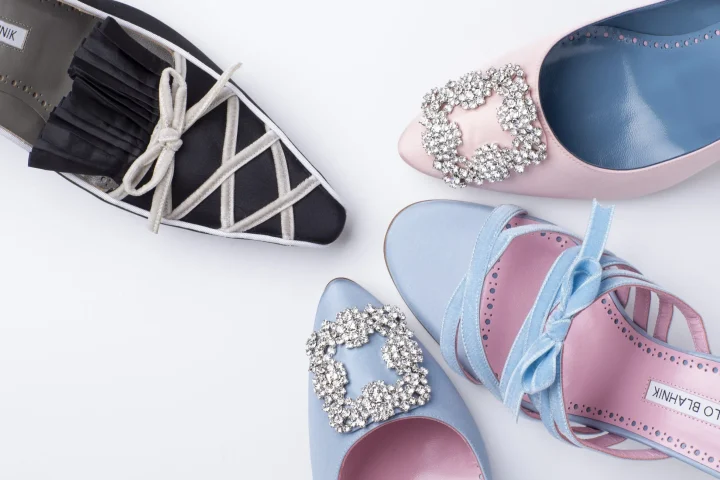 この特別なカプセルコレクションは、18世紀フランス宮廷のロココ様式における繊細な装飾性と、マノロ ブラニクの卓越したクラフトマンシップが融合したラインナップです。立体的なシルエット、上質で滑らかな素材、プリーツやリボンといった細やかなディテールが随所に施され、見る者の視線を引きつける一足に仕上げられています。
