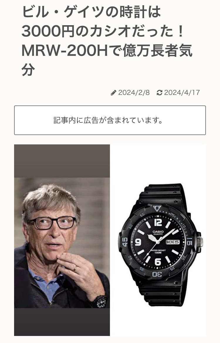 ゲイツの腕時計検索したら黒と白で時字が太めの線とか点だし針も太めだしそういう理由かもな