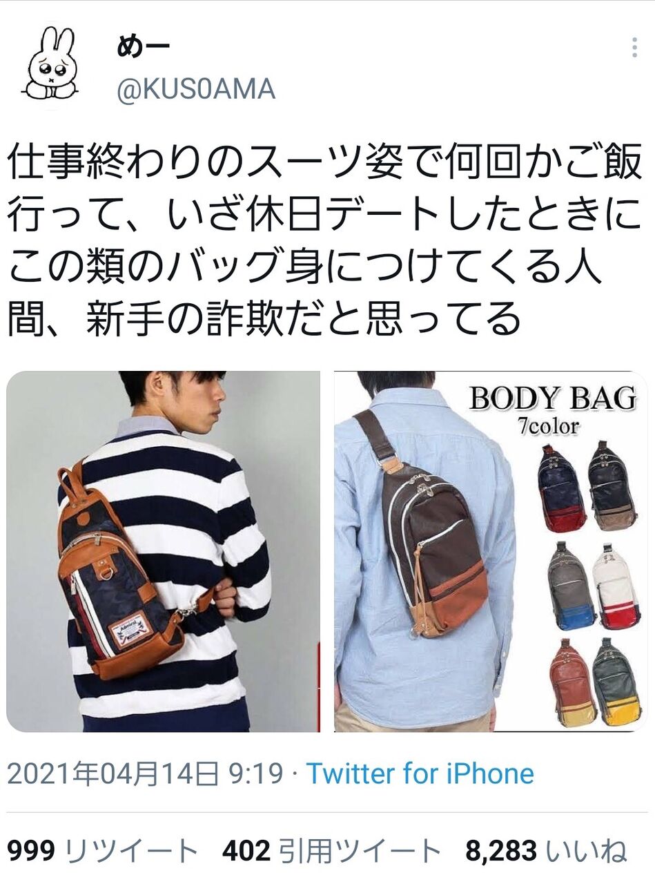 ボディバッグが駄目なのか?確かにこんなダサいのは買わんけど