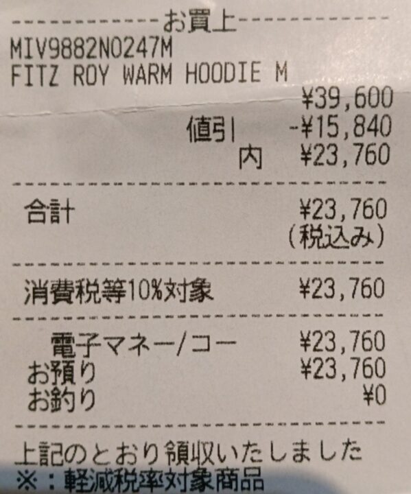 最初アークテリクスにしようと思って行ったけど合羽みたいだったのでやめた