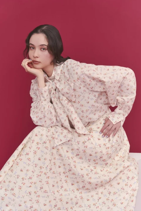 クラシカルな気品と自由なアレンジが楽しめるボウタイブラウスが新登場しました。シーンに合わせて結び方を変えたり、取り外したりできるボウタイは、リボン結びでフェミニンに、ネクタイ風に結んでマニッシュに、あるいは外してシンプルなスタンドカラーシャツとして着用できます。ボウタイの先と袖口にはリボン刺繍が施され、細部までブランドらしい愛らしさが詰まっています。チェックの織り柄入り生地は奥行きのある表情が魅力で、フレアスカートと柄を合わせたセットアップ風の着こなしも今季らしいスタイルです。