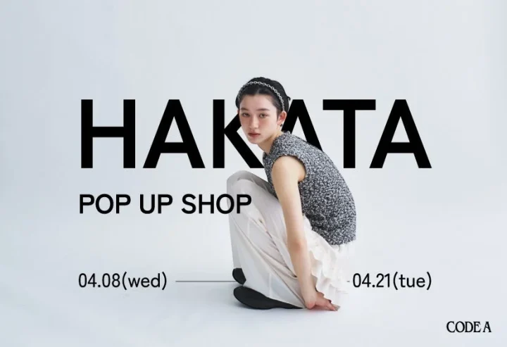 フリーランスPRの前坂美結さんとのコラボレーションコレクションが第2弾を迎えました。前坂さんの「いくつになっても可愛いを楽しみたい」という想いから、女性らしい甘さにCODE Aらしいモード感やエッジを加えた“大人も着られるフェミニン”が追求されています。このコレクションは、4月11日(土)より博多阪急POP UPでも取り扱いが開始されます。