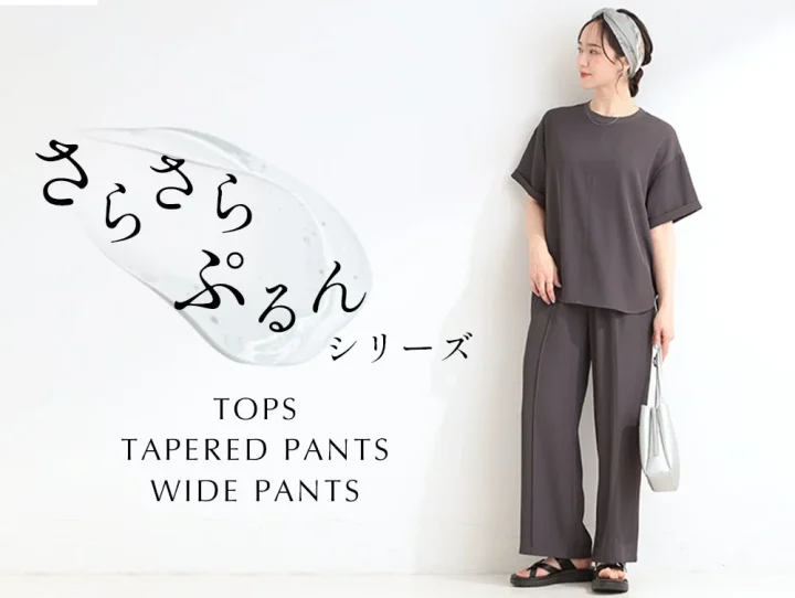 昨年も好評を博したテーパードパンツに加え、今年はトレンドを取り入れたワイドパンツと、セットアップとしても着用できるトップスが新登場しました。忙しい朝でもさっと着るだけで様になり、こなれたカジュアルスタイルが完成します。