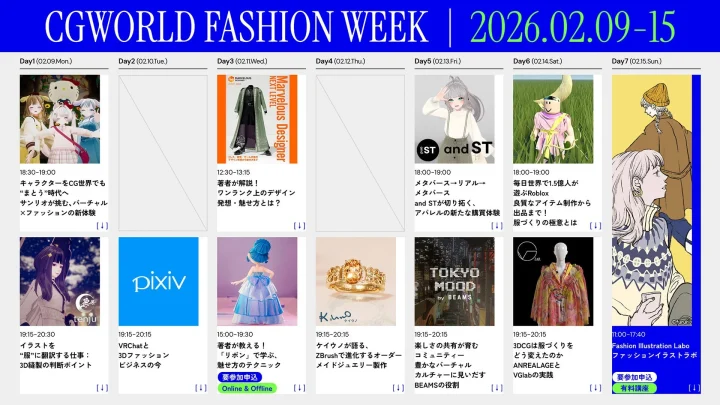ピクシブ、BEAMS、YOYOGIMORIも登壇!3DCG×ファッションのオンラインイベント『CGWORLD Fashion Week』タイムテーブル全公開