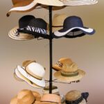 ブティックのような空間で、棚には様々なデザインと色のハンドバッグが多数陳列され、ハンガーラックには柄物のワンピースが掛かっています。