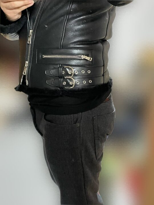 革ジャンはジャストサイズで絶妙なフィット感が暖かい