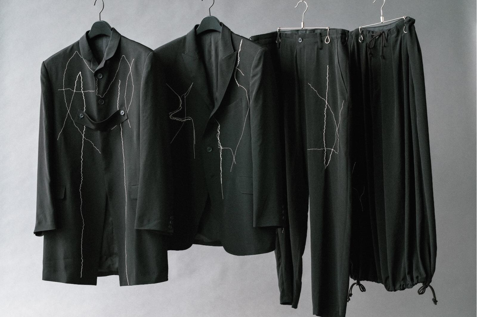 ヨウジヤマモト“ひび割れ風”刺繍のジャケット&パンツ、軽やかなタキシード生地で – ファッションプレス