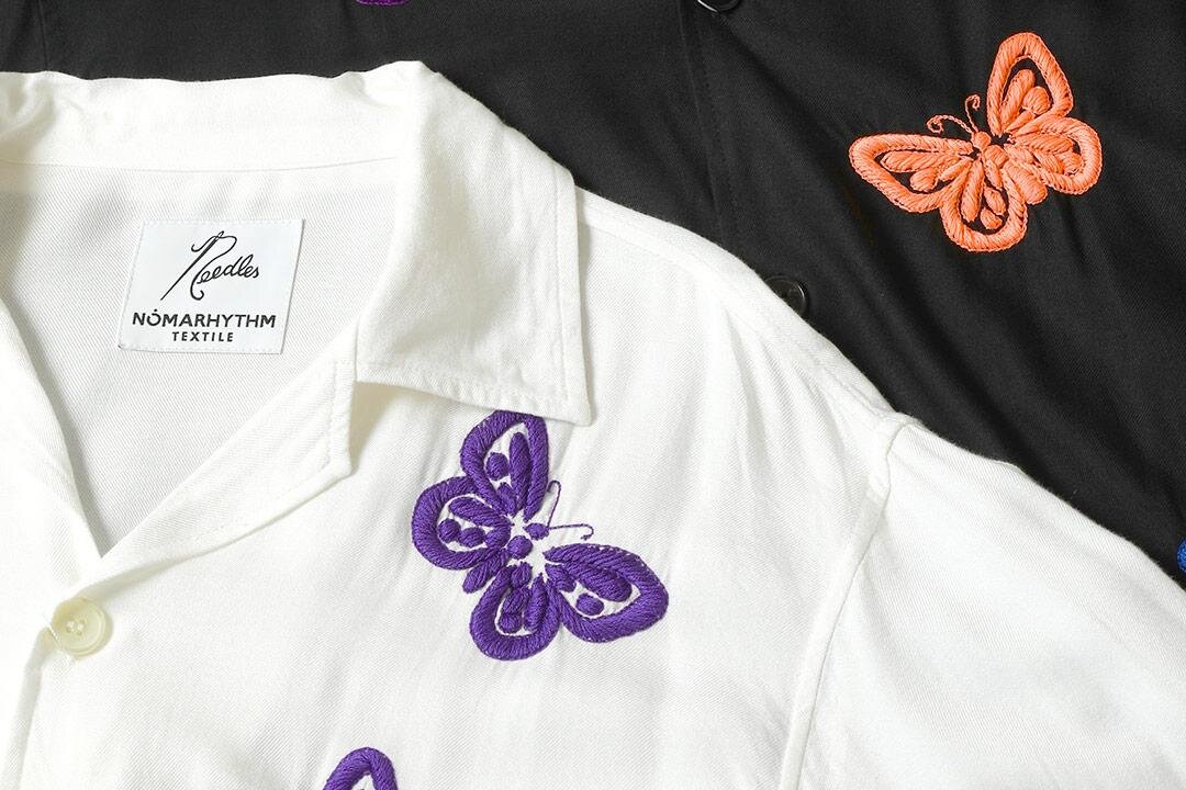 ニードルズとノーマリズム テキスタイルがコラボレーションし、パピヨン刺繍を施したカバナシャツやデニムパンツを発表。個性的なデザインが魅力の新作コレクション。
