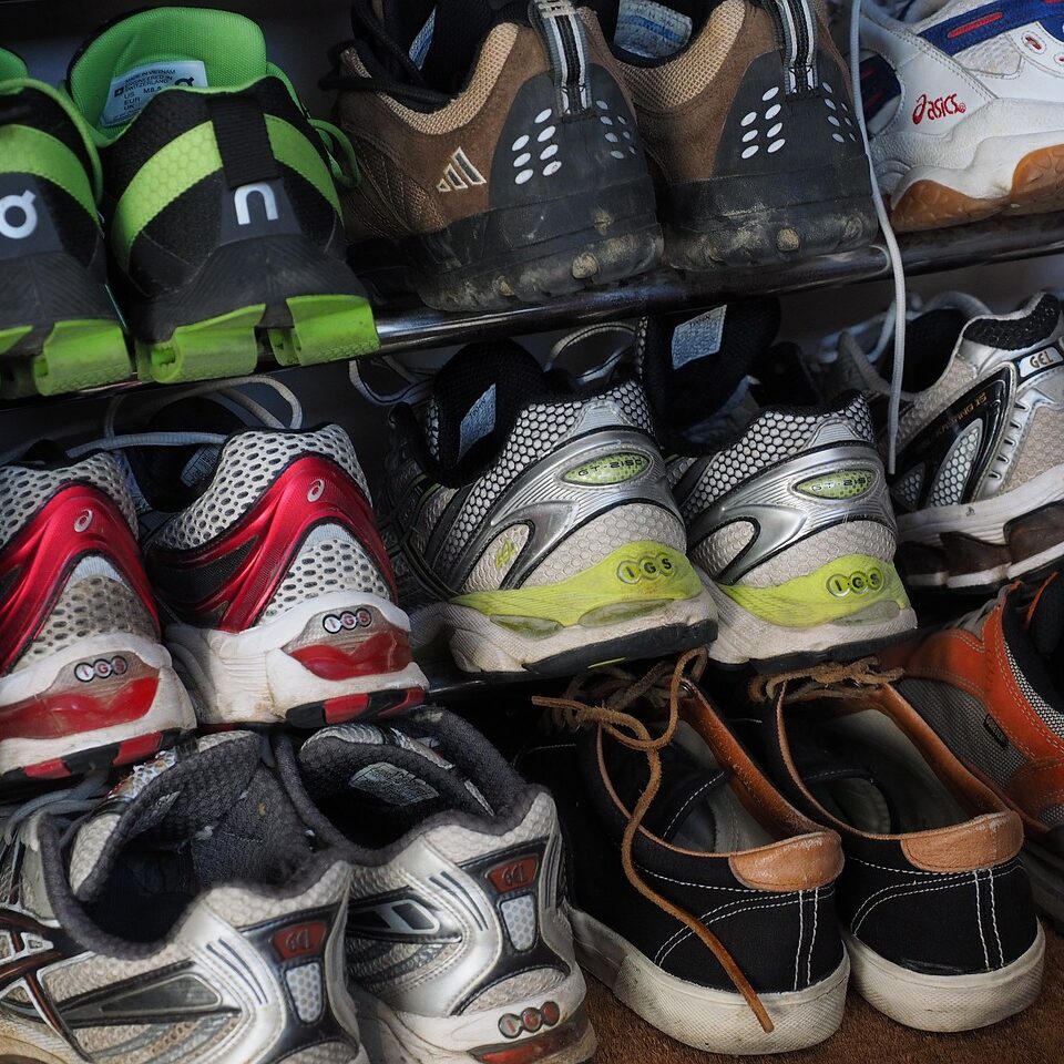 登山靴とハイキングシューズとランニング用と事務用だけでも4足食うし趣味あると増える