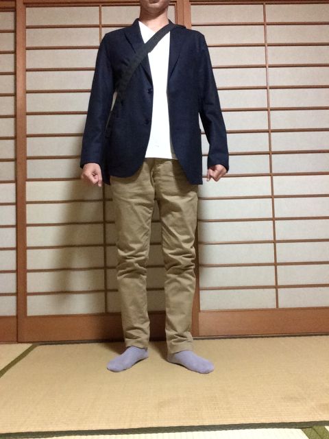 ユニクロっぽく見えたくなかったら、このくらいで十分。袖はあってるから、微妙な緩さがあった方がいい。5年後も着れるし
