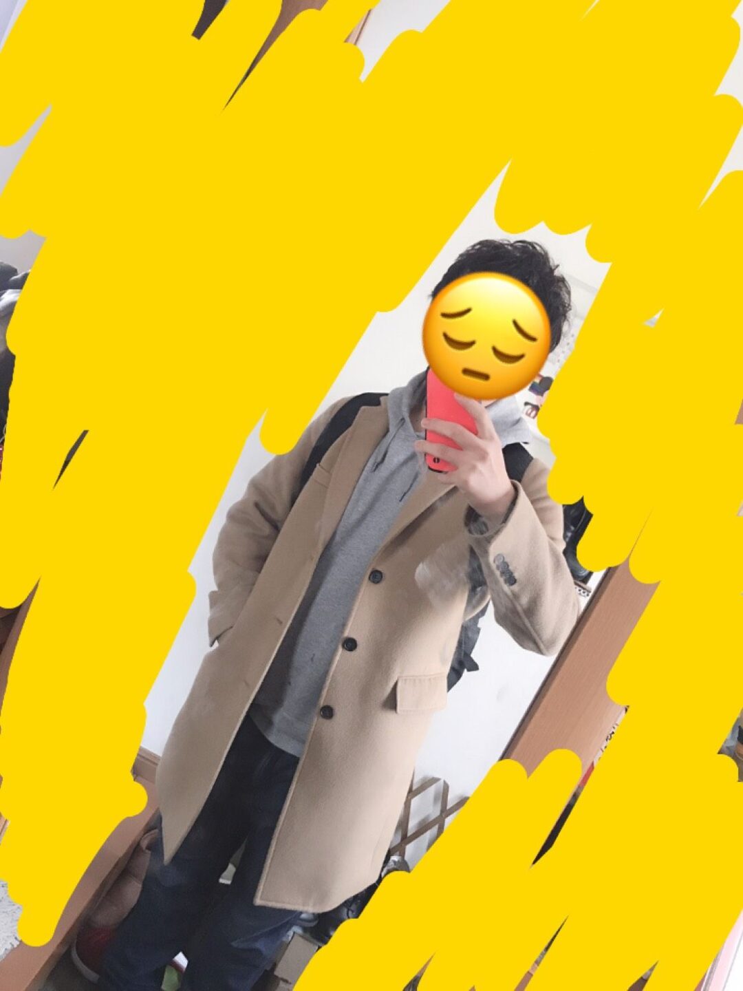 理由はコートがきれい目なのにインナーのフードがカジュアルすぎるシルエットだからちぐはぐ