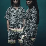 コーティングされたファブリックはワックスド・ガーメントの機能性を取り入れ、コーデュロイ・ベルベットには、表面に芽吹く蕾のような繊細な花々の刺繍が施されています。パッチワークやカモフラージュのテクスチャーは、樹皮や苔、裸の枝が持つ色彩の豊かさを表現し、リージェンシー・ファッションにインスパイアされたマイクロリボン、フリル、ギャザーといったディテールが添えられています。