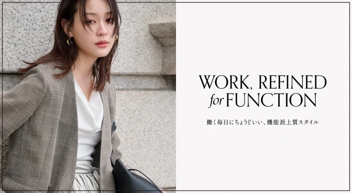 「Work, Refined for Function」をコンセプトに、忙しい毎日に寄り添う機能美オフィスウェアが提案されています。ウォッシャブル、UVカット、接触冷感、防シワといった快適さを支える機能を備えつつ、洗練されたデザインが魅力です。今の働き方にフィットする、新しいオフィススタイルが多数登場しています。