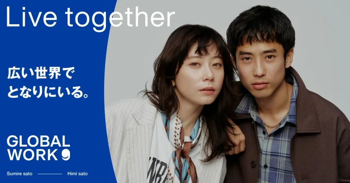 今回のモデルに起用された佐藤菫さんとHIMIさん姉弟は、俳優とアーティストを両親に持ち、自身もモデル、俳優、アーティストとして活躍されています。GLOBAL WORKは、2004年から2005年に両親を、2006年には母親をモデルとして起用した歴史があります。それから20年の時を経て、両親のクリエイティビティを受け継ぎ、独自の道を切り拓くおふたりをモデルとして迎えることとなり、ブランドの歴史と家族の絆が時を超えて交差する特別なタッグが実現しました。