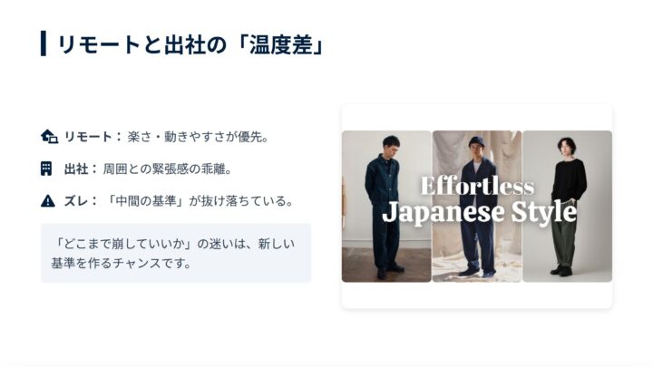 リモート・出社でズレる服装の感覚