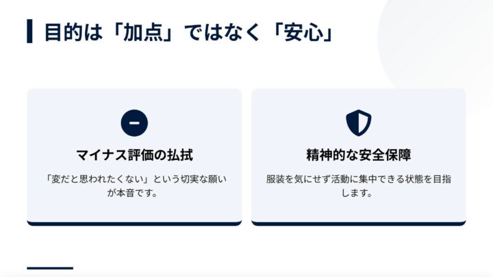 「無難な服装だとダサく見えるのでは」