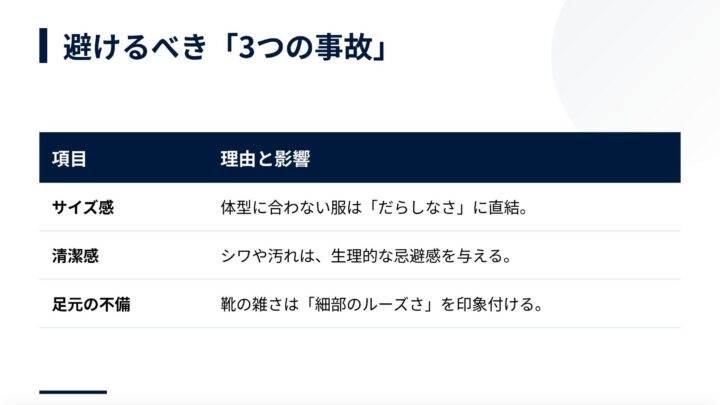 第一印象は“センス”ではなく「事故らなさ」で決まる