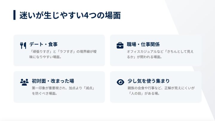 デートや仕事、初対面の場など、