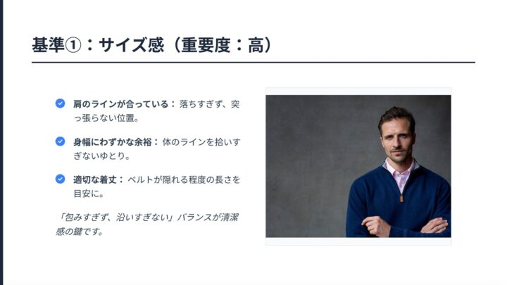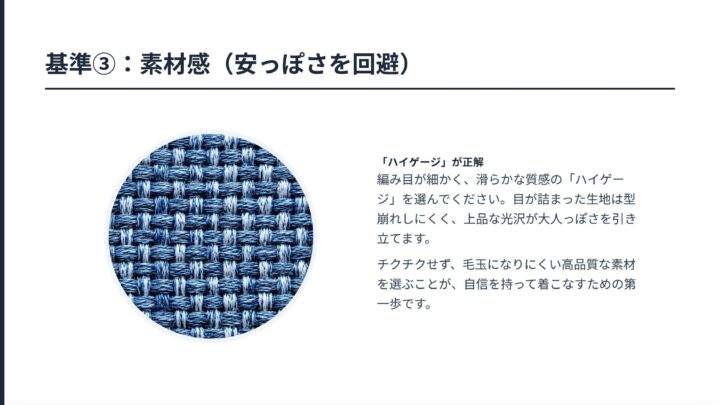 ニット・カーディガンの基準はかなり整理できたと思います。